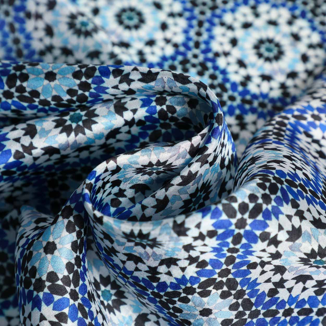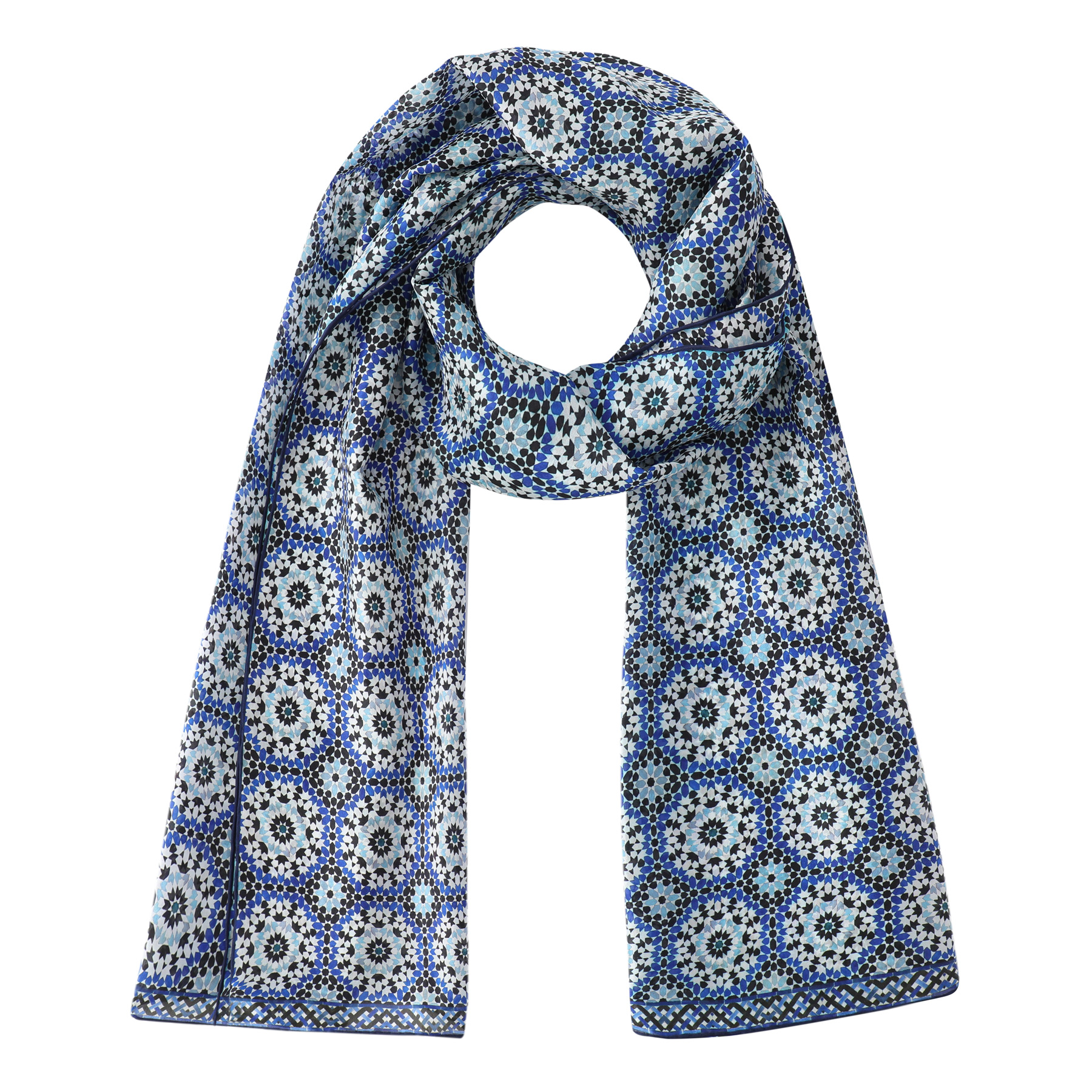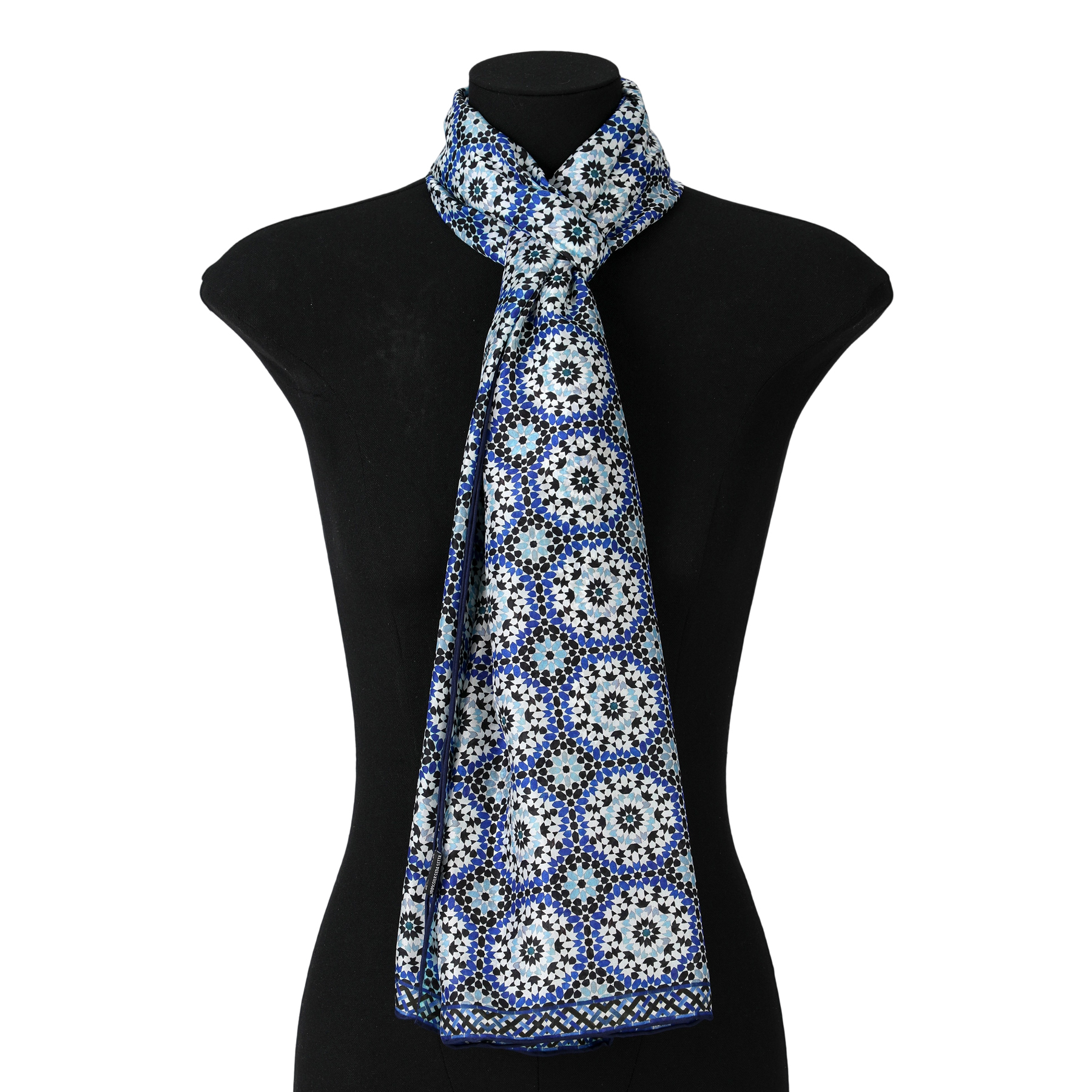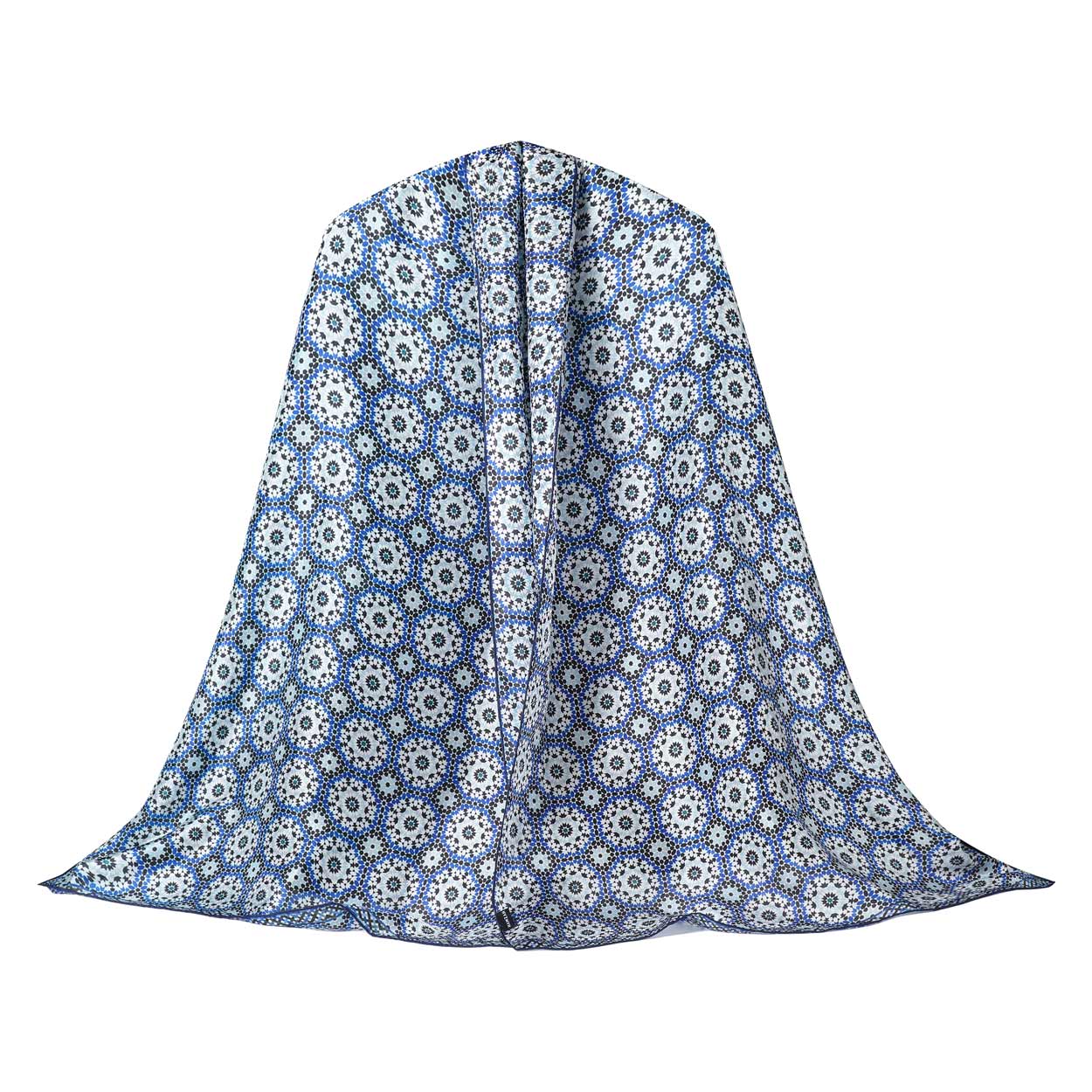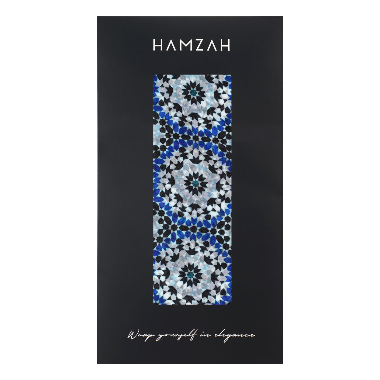 Blue and gray silk scarf featuring beautiful Islamic Geometry pattern.