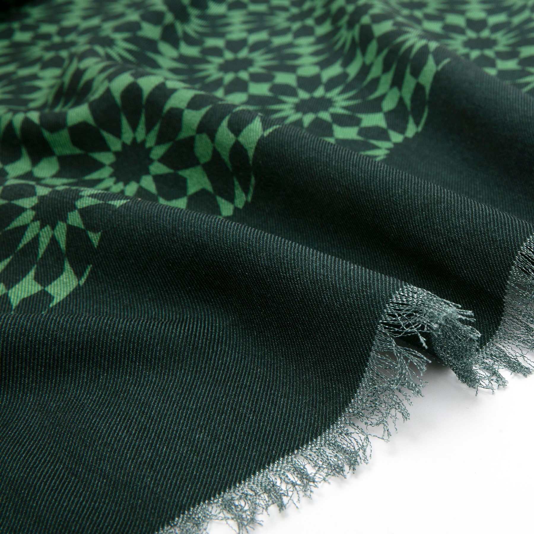 Silk and wool printed scarf featuring a colorful print inspired by Islamic Geometry from the Alhambra Palace of Granada.