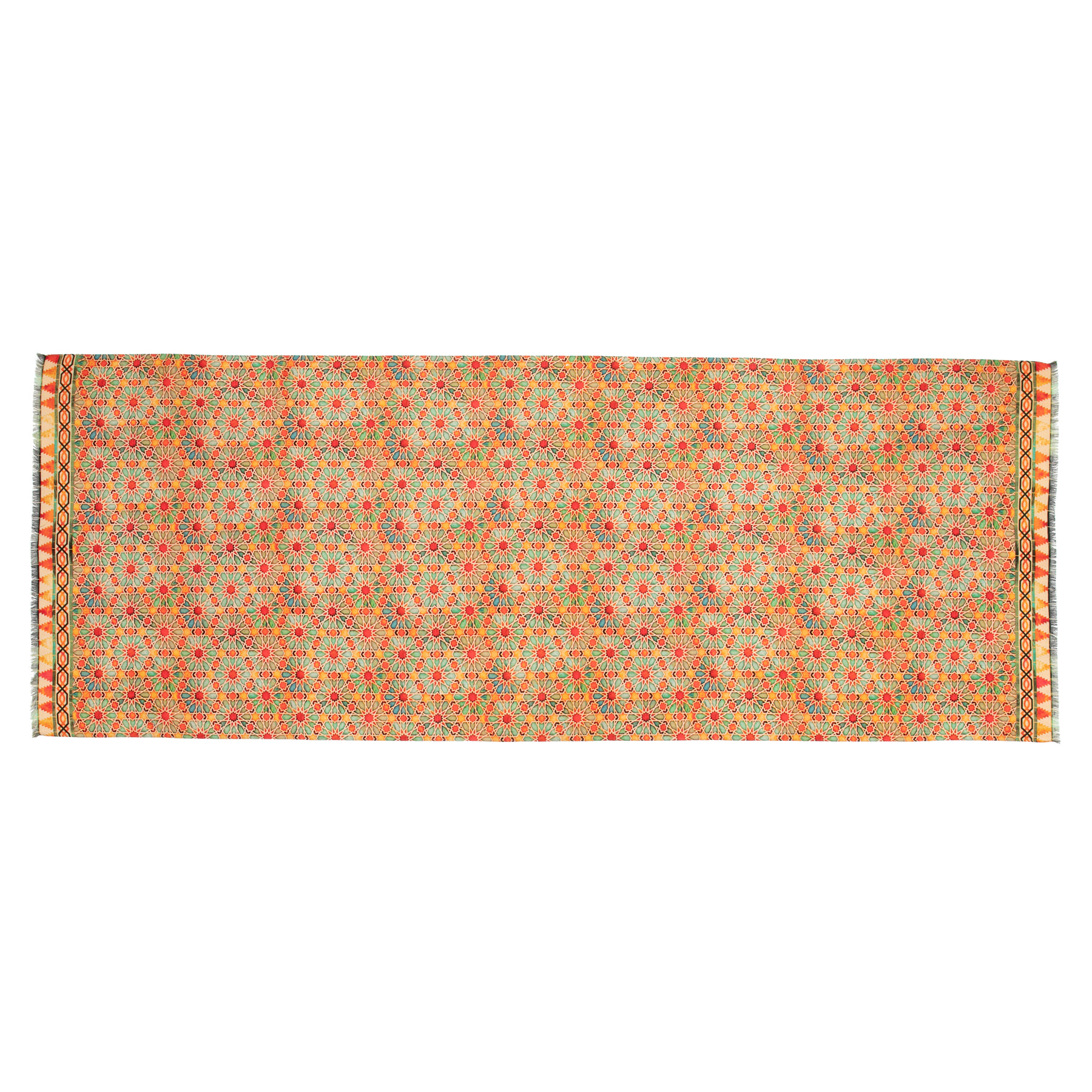 Silk and wool printed scarf featuring a colorful print inspired by Islamic Geometry from the Alhambra Palace of Granada.